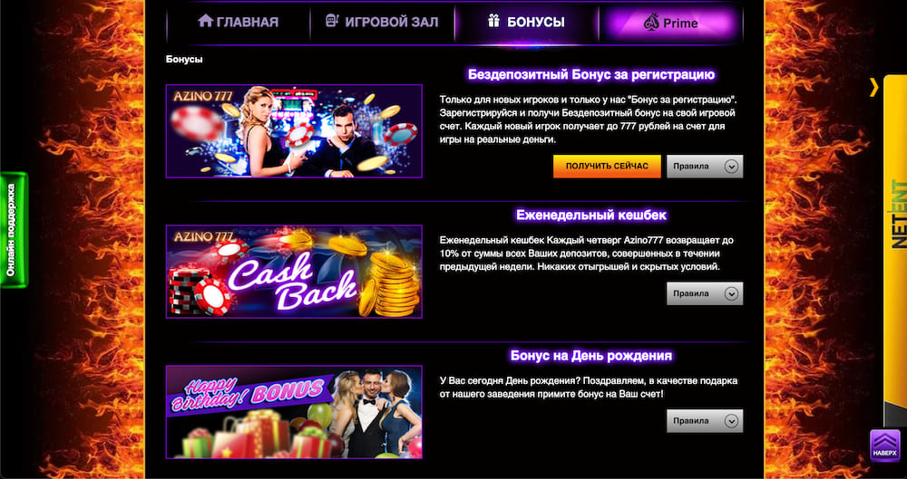 | Вознаграждение ко Дню рождения пользователя | Зарегистрированные пользователи Азино 777 получают возможность воспользоваться персональным бонусом в честь своего дня рождения. Такое индивидуальное поощрение — одно из многих преимуществ регистрации на платформе. |